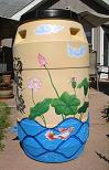 The four photos on the first row is "Love yer Mother" sponsored by Assist-A-Pet in association with Digital Studios Inc. / Row two is "Thai and Thai Again" commissioned by Thipi Thai restaurant of LaGrange. I had great fun painting these barrels! They're ecologically and economically friendly. I can paint your old barrel or supply you with a new one.